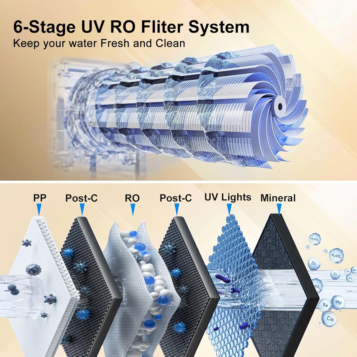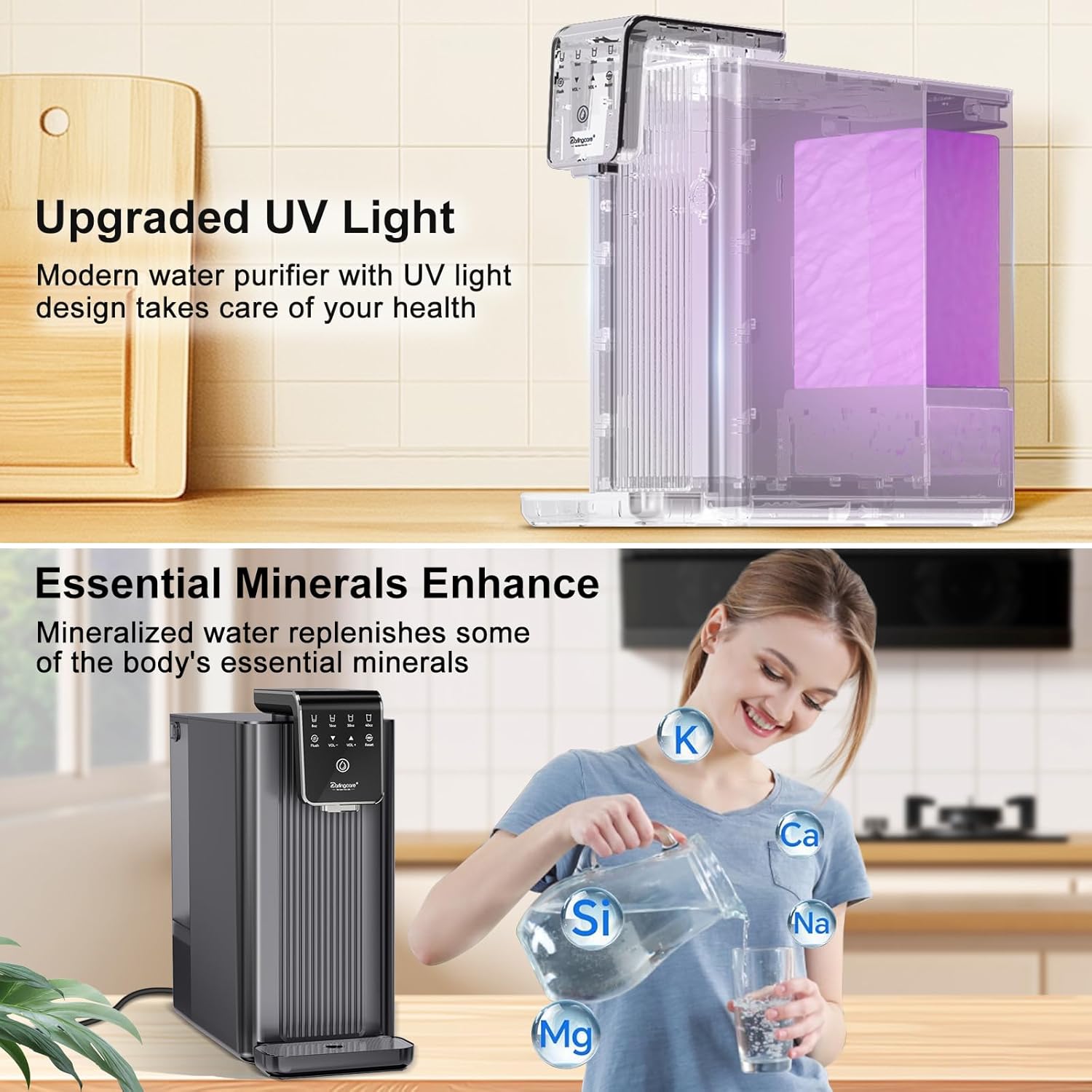 - ❤️【Plug & Play &Easy to use】With immediate plug-and-play functionality, No installation required for the countertop reverse osmosis water filter, making it suitable for tabletop, kitchens, living rooms, offices, RVs and anywhere that can supply power source.
